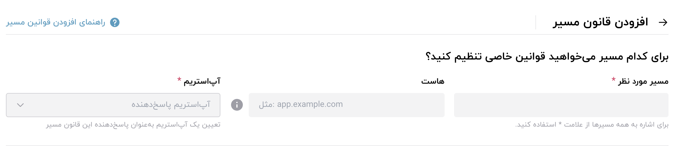 آپاستریم (Upstream): از این منو، گروه سرورهای اصلی (آپاستریم) که باید پاسخگوی درخواستهای این مسیر باشند را انتخاب کنید.