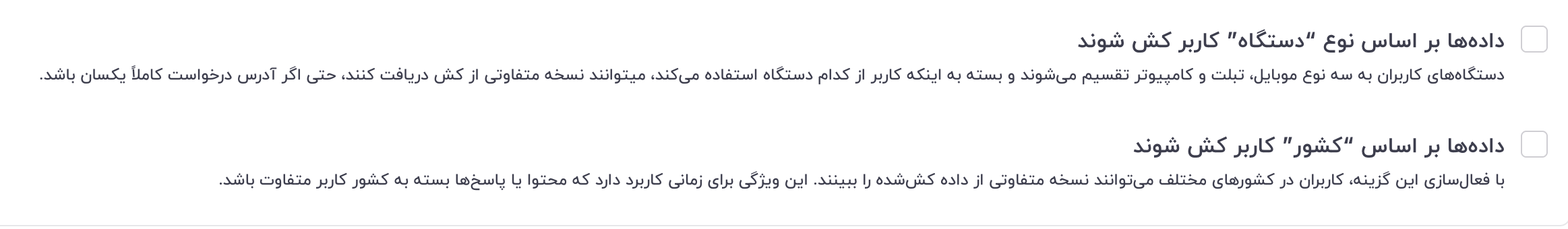 دادهها بر اساس “کشور” کاربر کش شوند: با فعالسازی این گزینه، برای هر کشور یک نسخه کش جداگانه ایجاد میشود. این قابلیت برای وبسایتهایی که محتوای بومیسازی شده ارائه میدهند (مثلاً قیمتها با واحد پول محلی یا متن به زبانهای مختلف)، ضروری است.