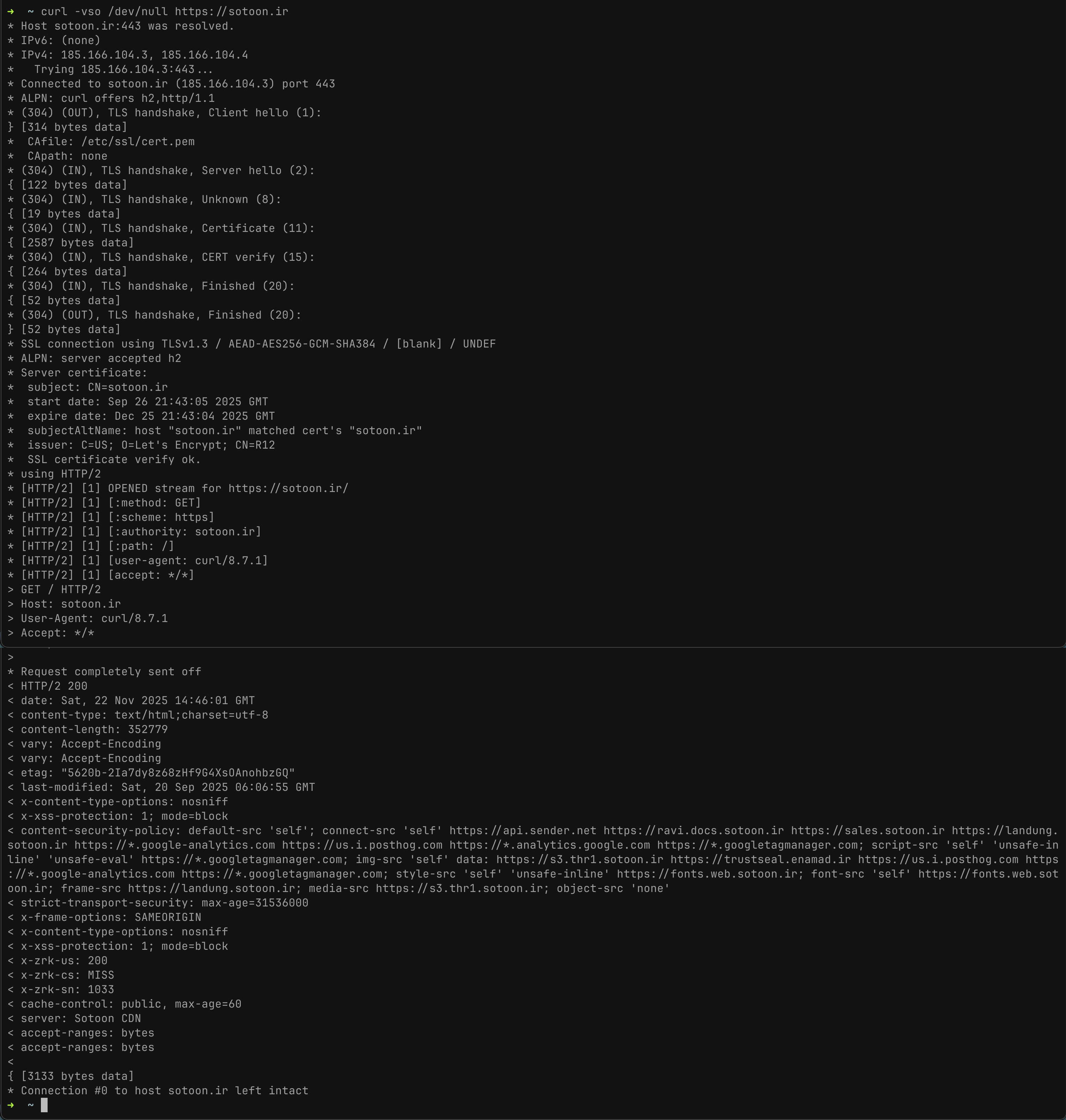 برای مثال تست برای دامنه sotoon.ir به شکل زیر وارد شده است: