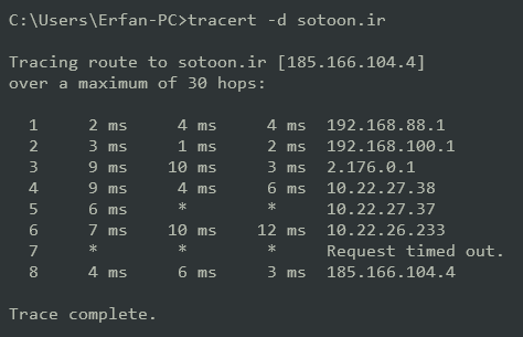 tracert -d sotoon.ir