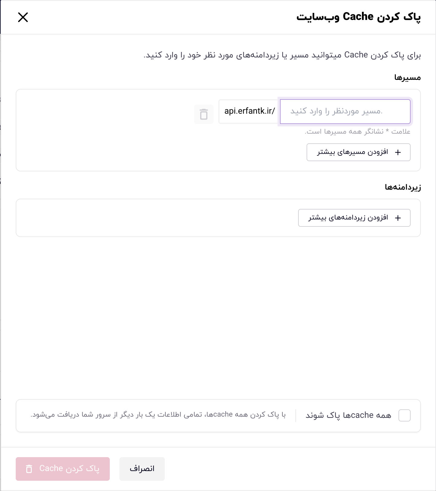 در صورتی که بخواهید یک یا چند محتوای خاص از کش حذف شوند باید در آن مسیرهای مرتبط با محتوای مورد نظر خود برای حذف از کش را وارد کنید.